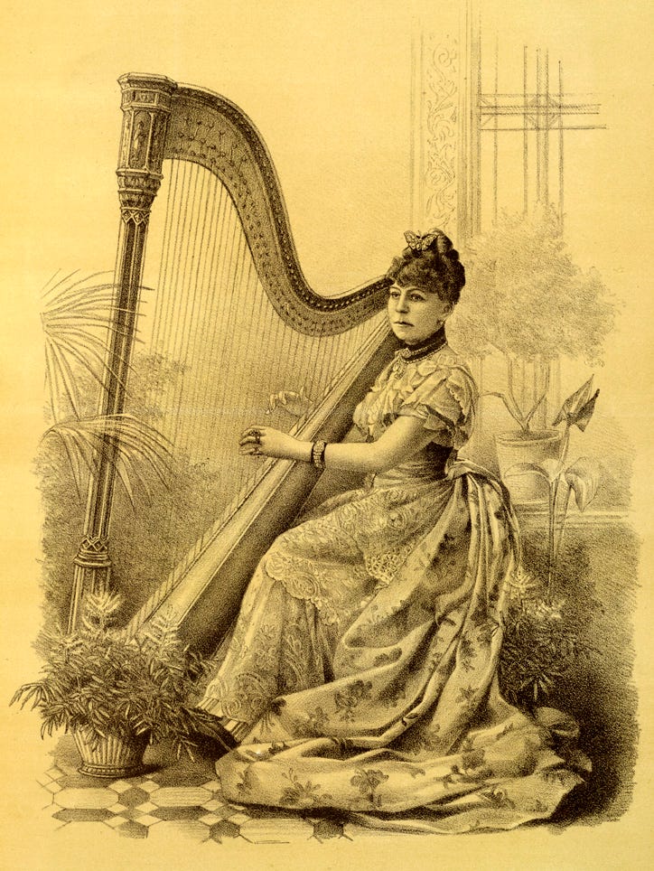 This did not stop her. She threw herself into the world of parties and literary salons, where she entertained her guests with her harp playing, alongside her soon-acquired, and long-time lover, The Marquis de Leuville, a man worthy of his own story due to the rampant rumours that he was a Victorian fraud.